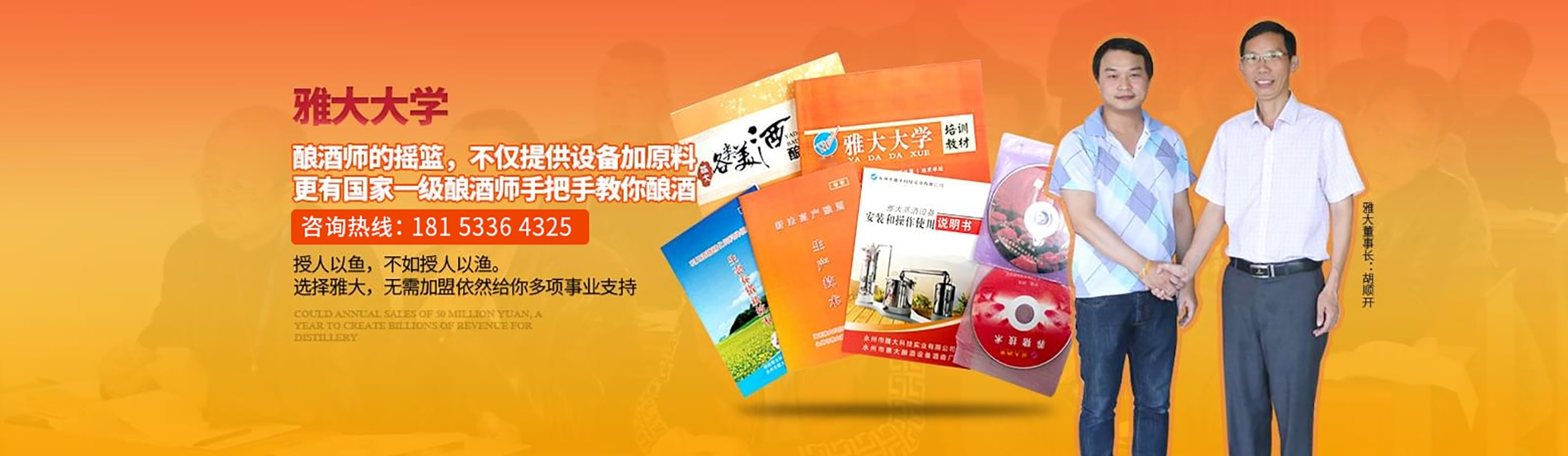 永州市雅大科技實業有限公司成立于1999年,位于湖南省南部國家歷史文化名城—永州市,是一家集釀酒技術研究、釀酒設備、釀酒酒曲生產銷售于一體的國家高新技術企業。擁有標準房、科技培訓樓13500m7,公司連續十年被省、市江商局評為重合同守信用單位,榮獲201 7年中國釀酒設備行業新標桿企業獎??商峁┽劸祈椖空w解決方案,包括釀酒項目選擇、酒廠規劃設計、釀酒技術培訓,酒類產品設計、包裝瓶(盒)設計、酒品營銷策劃、協助辦理資質、編制可行性報告等方面。